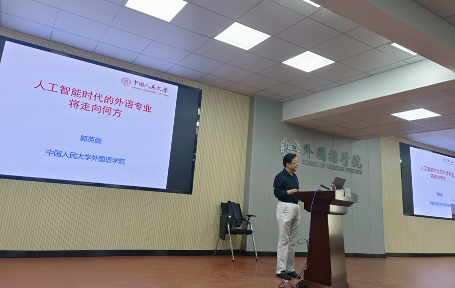 10月13日下午,外国语学院名师专题课暨云影讲坛在437必赢会员中心金盆岭校区外国语学院三教321报告厅成功举办。此次名师专题课邀请了中国人民大学郭英剑教授为师生作题为“人工智能时代的外语专业将走向何方”的学术讲座。活动由外国语学院院长段胜峰教授主持,近200名师生参加。