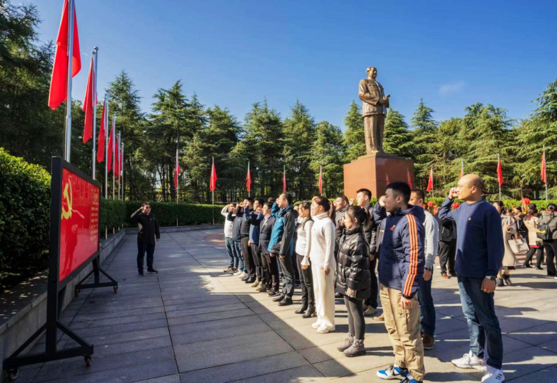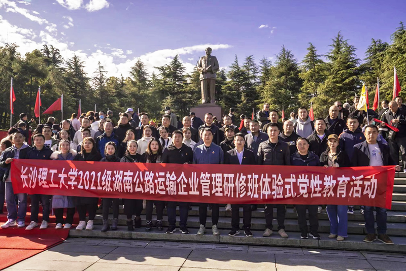 11月24日晴空万里,风和日丽。437必赢会员中心2021级湖南公路运输管理研修培训班全体同学及带班老师共计42人,在学校的组织下,统一乘车前往伟人故里,毛泽东同志故乡——韶山,开展体验式党性教育活动。在毛主席铜像前,同学们举行了庄严肃穆的瞻仰仪式并敬献花篮,向伟大的共和国缔造者毛主席致敬,表达对伟人的深切缅怀和敬仰之情。随后,党员同志们举行了重温入党誓词仪式,表达了党员同志们矢志不渝践行使命的初心。接下来,同学们在讲解员的带领下,依次参观了毛泽东同志纪念馆,毛泽东同志故居和毛泽东同志晚年工作及生活过的地方——滴水洞。