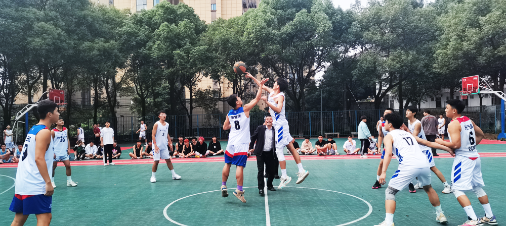 充满青春活力的啦啦操,点燃了开幕式所有同学的激情。随着谢书记的发球,篮球表演赛正式开始。