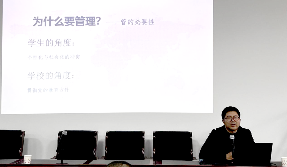 交流会上,有着丰富班主任管理经验的谌魁老师从班主任定位、班主任应具备的能力、班主任如何安全管理班级、班主任如何做好访谈工作几个方面讲述如何做好学生日常管理工作,分享了自己的经验和班级管理思维模式。