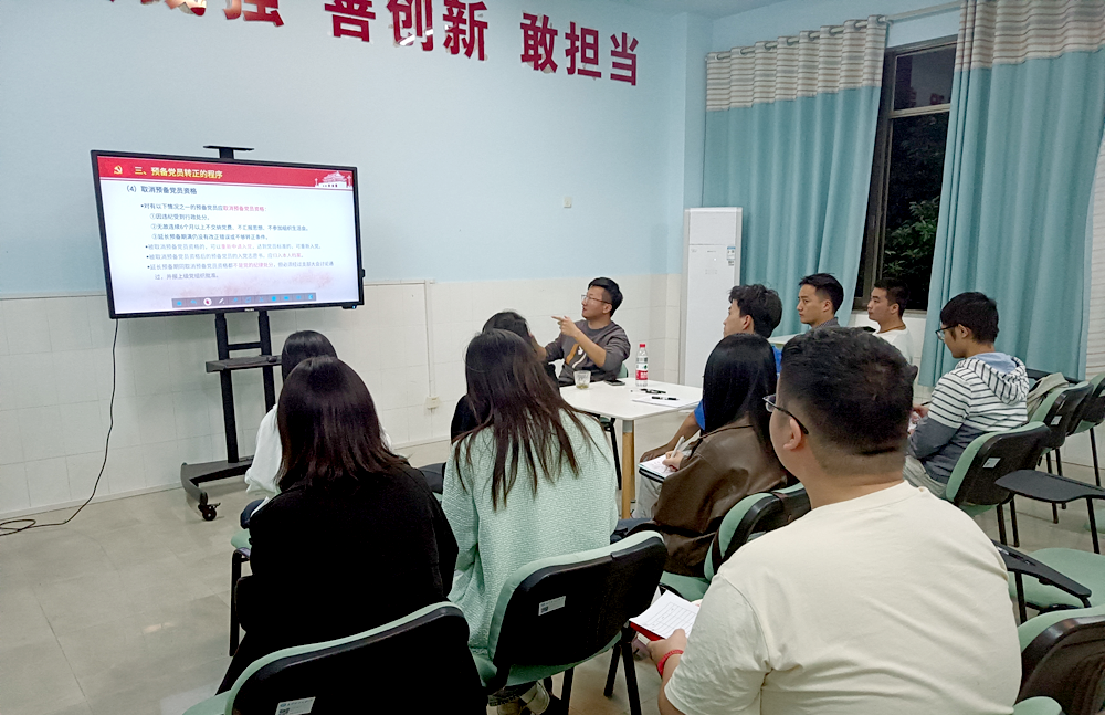 11月7日晚,郭恒老师围绕为什么接受新党员要有预备期、预备党员在预备期需要注意的问题、预备党员如何进一步提升党性修养、预备党员转正程序等议题,向大家进行了深入浅出的讲解。他要求预备党员们共产党人要有先锋模范作用,要有过硬的思想,要有坚定的党性,要不断加强党性修养。