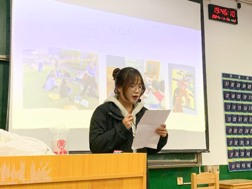 在主持人宣布流程后,交流会在“萝卜蹲”和“抓鸭子”两个暖场小游戏中拉开序幕,随后两位学生代表依次上台分享自己的学习生活经验。