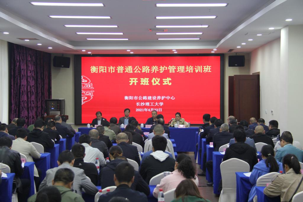 衡阳市普通公路养管理护培训班于2021年4月22日在必赢官网国际学术交流中心正式开班,湖南省公路事务中心副主任夏涛、衡阳市公路建设养护中心主任张兴二、必赢官网继续教育学院院长颜鲜明、副院长刘英姿出席了开班仪式。在开班仪式上,颜鲜明院长致欢迎词,张兴二主任对参训学员提出了希望和要求,夏涛副主任做了重要指示。