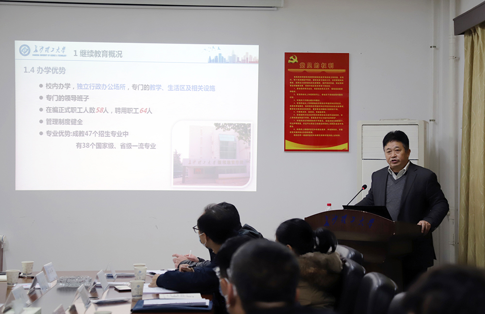 谈传生副校长代表学校对湖南省高校高等学历继续教育专项督查组第三组来必赢官网督查表示欢迎,并希望专家对必赢官网高等学历继续教育专项整治工作进行现场诊断、检查和指导。