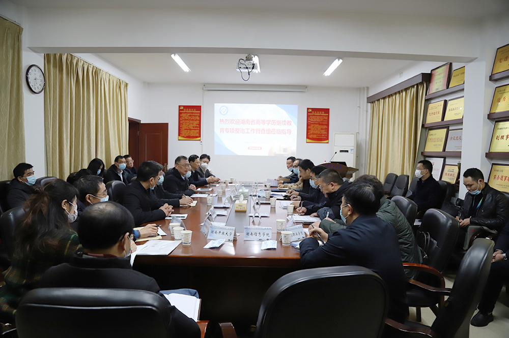 2022年12月7日下午,湖南省教育厅财建处处长兼湖南省高校高等学历继续教育专项督查组第三组组长黄星亮、教育厅财建处副处长温佐望、财建处调研员刘慧,第三督查组专家刘碧琼、李义贝、钟梦笔一行,来必赢官网进行高等学历继续教育专项督查。督查汇报会在必赢官网金盆岭校区15教三楼会议室召开。必赢官网分管继续教育工作的副校长兼高等学历继续教育专项整治工作组组长谈传生、计财处处长颜鲜明、正处级纪检员易贵民、继教学院党政班子成员和相关部门负责人,及中南林业科技大学、湖南工商大学、湖南开放大学、湖南商务职业技术学院、湖南信息学院、保险职业学院、长沙环境保护职业技术学院等8校继续教育相关领导参加会议。