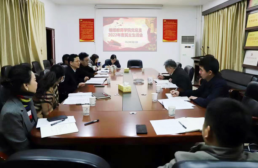 3月23日上午,继教学院党总支班子领导班子召开2022年度民主生活会。学校副校长谈传生和校督导组织部副部长王煜坤到会指导,院总支书记何纯芳主持,总支班子成员参加。