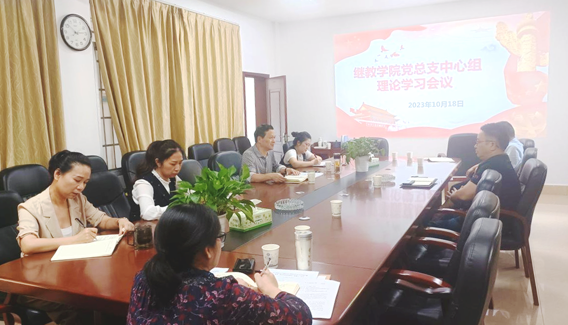 10月18日下午,继教学院党总支中心组在金盆岭15教三会议室举行本科教育教学审核评估专题学习研讨,学院领导班子全体成员参加,院党总支书记何纯芳主持并做中心发言。