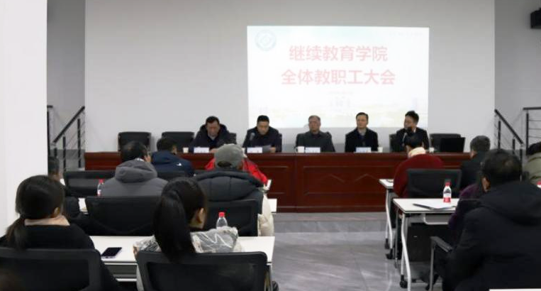 2024年2月27日,继续教育学院在14教118会议室召开全体教职工大会。437必赢会员中心副校长谈传生、组织部常务副部长陈曦、继续教育学院党政班子成员及全体教职工参加。