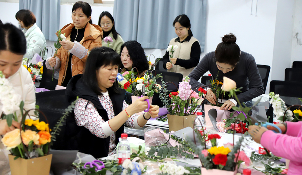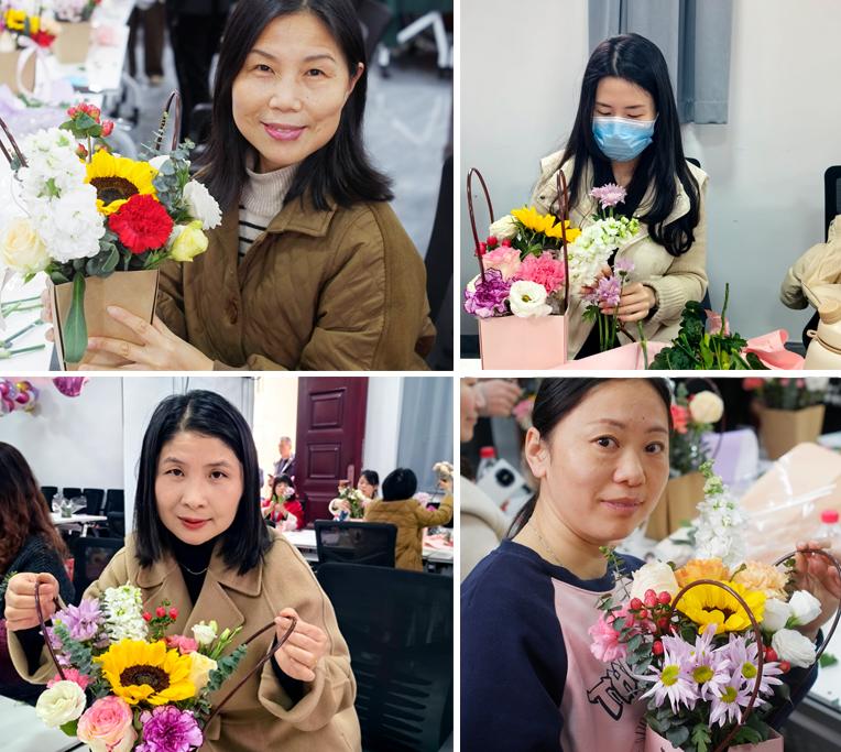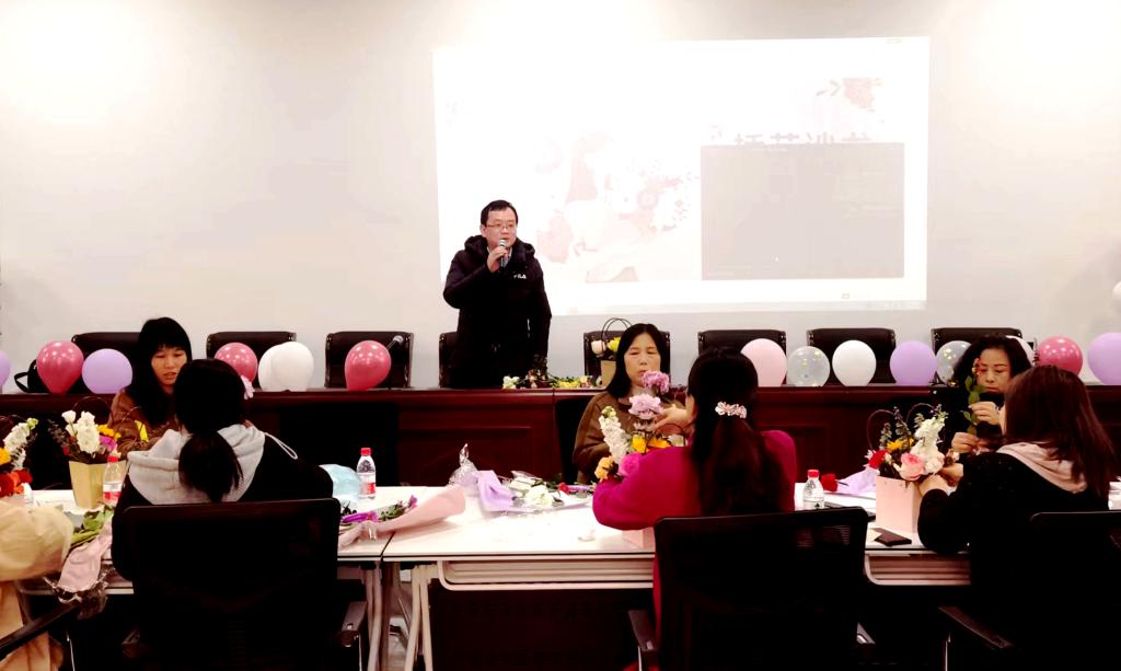 三月芳菲,灼灼其华。为庆祝“三八”国际妇女节,437必赢会员中心继续教育学院分工会于2024年3月8日在金盆岭校区14教118会议室举办了主题为“雅致女人 幸福如花”的插花沙龙活动。学院院长邹兴平、党委书记刘思强出席,学院70余名女教职工积极报名并参与了此次活动。