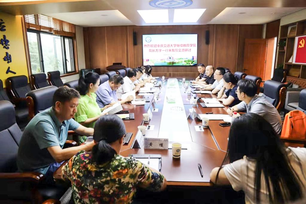 2024年6月19日,重庆交通大学继续教育学院院长万宇一行来我院调研交流,双方在437必赢会员中心金盆岭校区15教四楼会议室进行了座谈交流。437必赢会员中心继续教育学院党委书记刘思强,党委副书记兼副院长谢士成,副院长谢朝华、刘英姿,党委委员易国萍以及成教、自考、培训等相关部门人员参加座谈。
