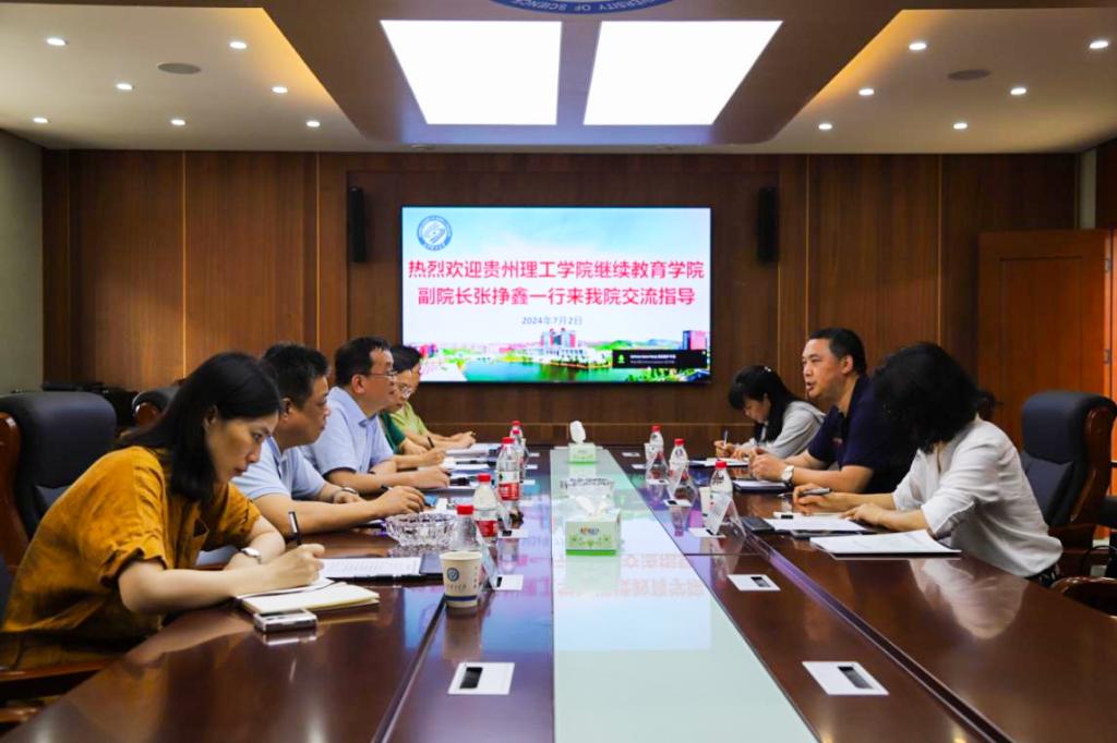 2024年7月2日下午,贵州理工学院继续教育学院副院长张挣鑫一行来我院调研交流。双方在15教四楼会议室进行了座谈交流。437必赢会员中心继续教育学院党委书记刘思强、副院长谢朝华和成教、自考、培训等相关部门人员参加座谈。