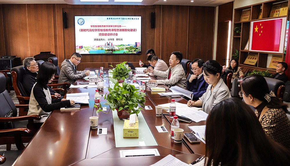 2025年4月2日下午,继续教育学院在15教4楼会议室举办教育部学习型社会重点任务——《新时代学历继续教育课程思政数智化建设》项目建设研讨会。项目主持人、副校长谈传生到会指导,继续教育学院院长邹兴平主持,资产管理与实验室建设管理处副处长彭霞,教务处副处长(挂职)张明军,湖南华富海辉教育技术有限公司负责人以及继续教育学院党委书记刘思强,副院长谢朝华、易国萍,教学管理部主任张静参加会议。