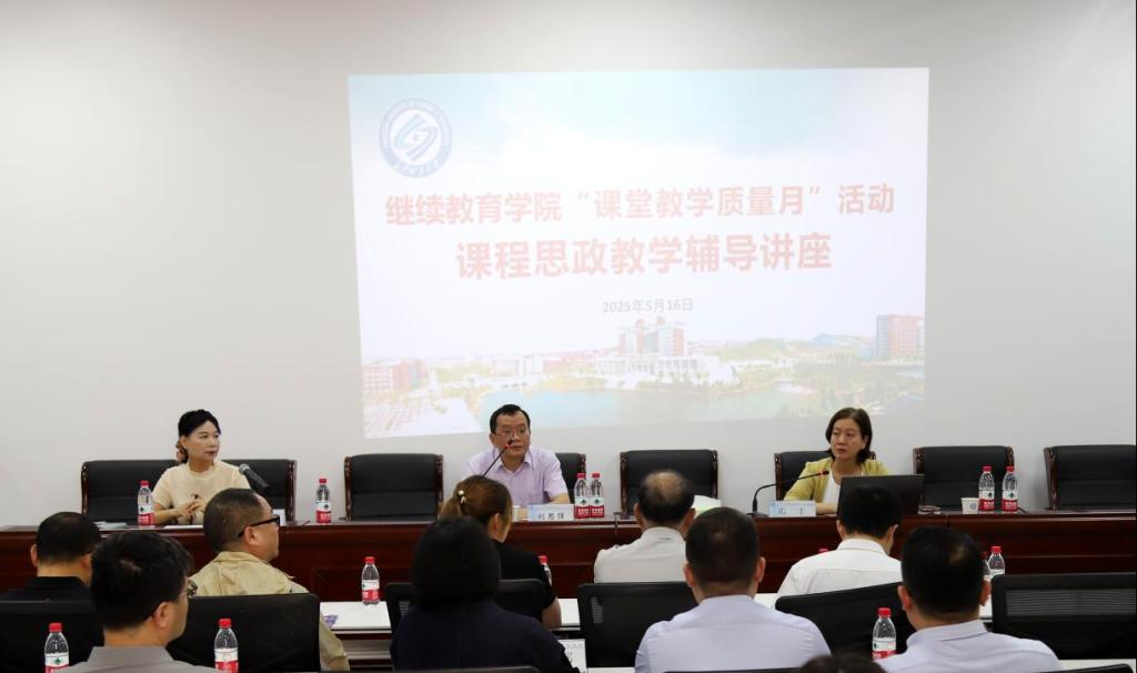 5月16日下午,我院教学管理部在14教118会议室举办课程思政教学辅导讲座。本次会议邀请到教育部课程思政教学名师、湖南省高校课堂教学比赛一等奖获得者、博士生导师、电气与信息工程学院副院长邓丰教授,作题为《课程思政深度融入专业教学的探索与实践》的专题讲座。会议由继教学院副院长易国萍主持,学院党委书记刘思强、教学管理部副主任李畅、合作机构负责人及全体任课教师参加。