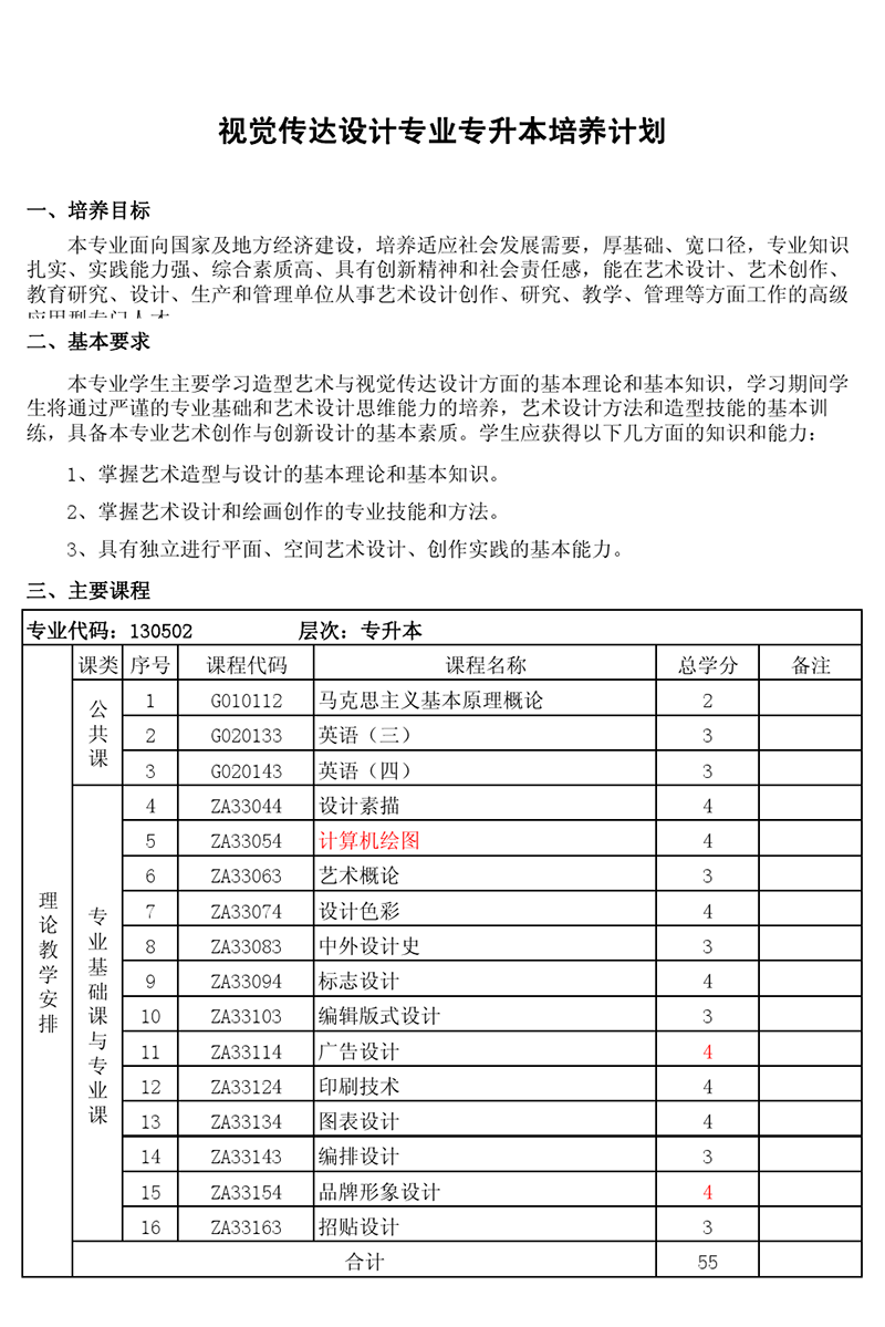 本科培养计划-专业代码:130502 视觉传达设计专业
