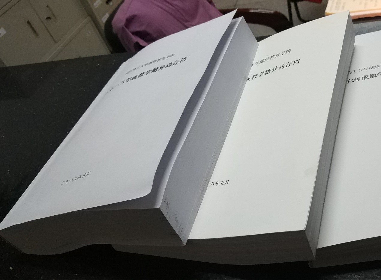 负责档案管理的甘吉玉老师,打印档案袋封面信息时,只能用针式打印机,手动一个一个地进行,守着打,袋子厚薄不一样,纸张质量不一样,摩擦力不一样,容易歪,严重的时候会卡纸,打坏了要重来,打印毕业证书也一样。