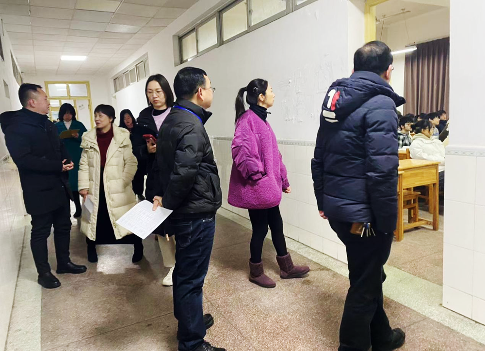 上午7点50,虽然天气寒冷,师生们依然精神饱满、神采奕奕准时奔赴14号教学楼上课。院领导一行细致检查了14号教学楼任课教师课堂教学、学生到课等情况,并强调要保障好教室空调供暖效果,教室相关设备要及时维护更新,学生手机要集中放入手机袋等,确保教学保障工作落实到位和其他各项工作井然有序开展。
