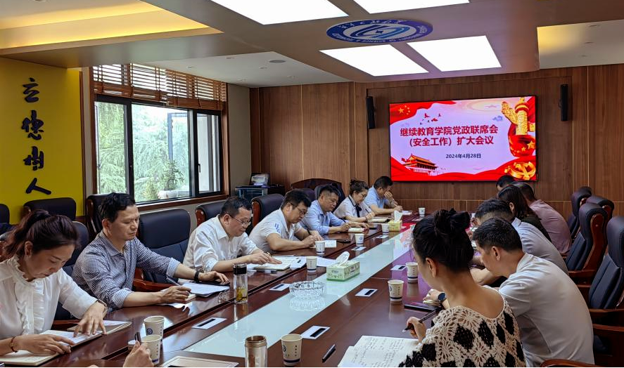 为落实学校校园安全工作会议精神,4月28日继教学院在15教四楼会议室召开了党政联席扩大会(安全工作专题会议)。学院党委书记刘思强主持会议,学院领导班子成员及各部门主任参加。