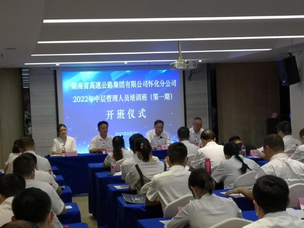 2022年8月3日,由湖南省高速公路集团有限公司怀化分公司委托、必赢官网承办的“湖南省高速公路集团有限公司怀化分公司2022年中层管理干部培训班(第一期)”,在云塘校区国际学术交流中心正式开班。湖南省高速公路集团有限公司怀化分公司党委书记、总经理刘刚,党委副书记兼工会主席吴林,437必赢会员中心继续教育学院院长邹兴平、副院长刘英姿等,参加了本次开班仪式。开班仪式由吴林副书记主持,邹兴平院长代表学院在开班仪式上致词,对培训班的全体参训学员表示热烈的欢迎,对湖南高速公路集团公司怀化分公司表示衷心感谢,并对双方更加广泛和深入的合作寄予深切的期待;刘刚总经理代表委托单位在开班仪式上讲话,就本次培训学习向全体受训学员进行训前动员,并对全体学员提出了具体的受训要求和期望。