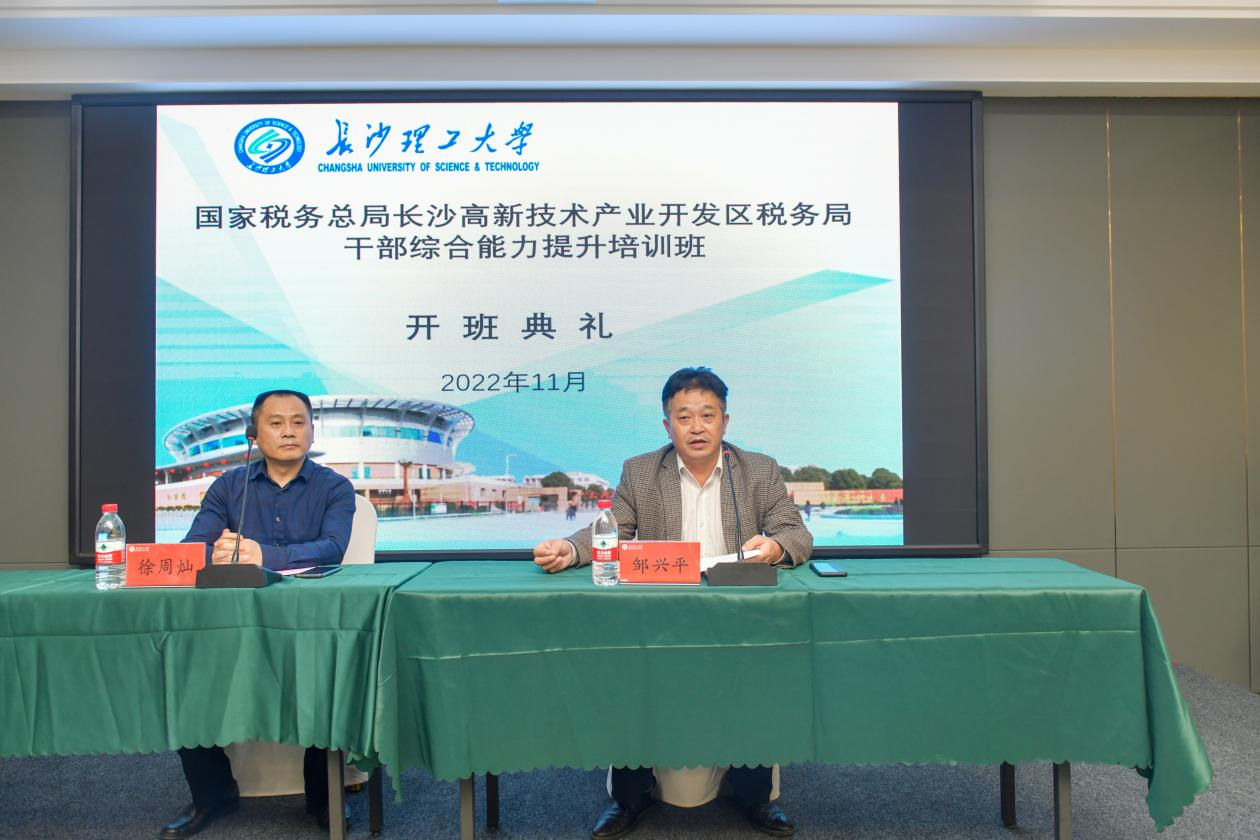 2022年11月21日,由国家税务总局长沙市税务局委托必赢官网承办的 “长沙高新技术产业开发区税务局干部综合能力提升培训班”,在437必赢会员中心正式开班。国家税务总局长沙高新技术产业开发区税务局党委委员、副局长徐周灿同志、437必赢会员中心继续教育学院院长邹兴平教授参加了本次开班仪式。