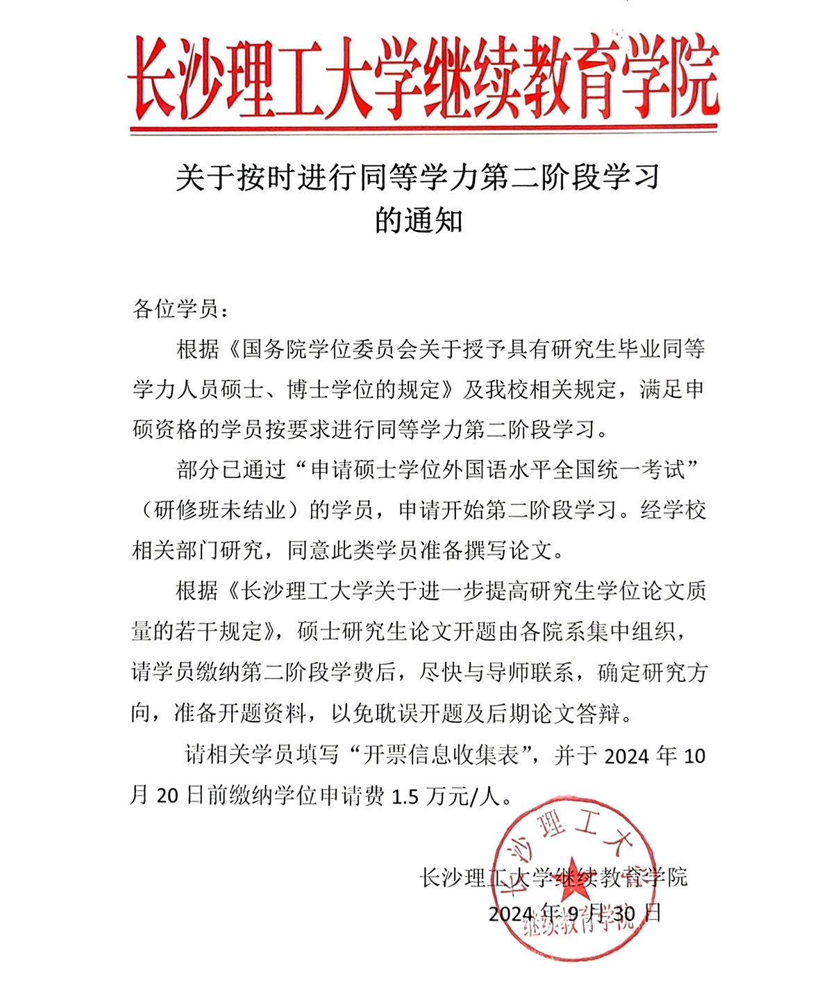 关于开展 2024 年同等学力硕士培养报名工作的通知