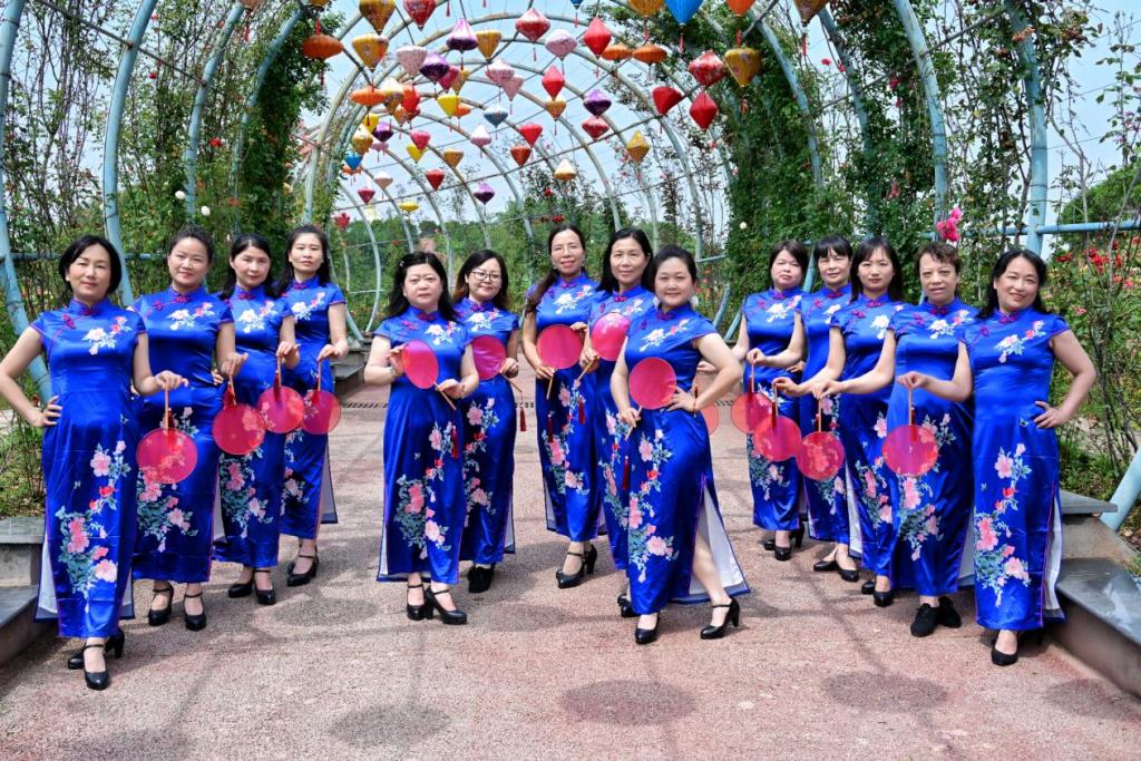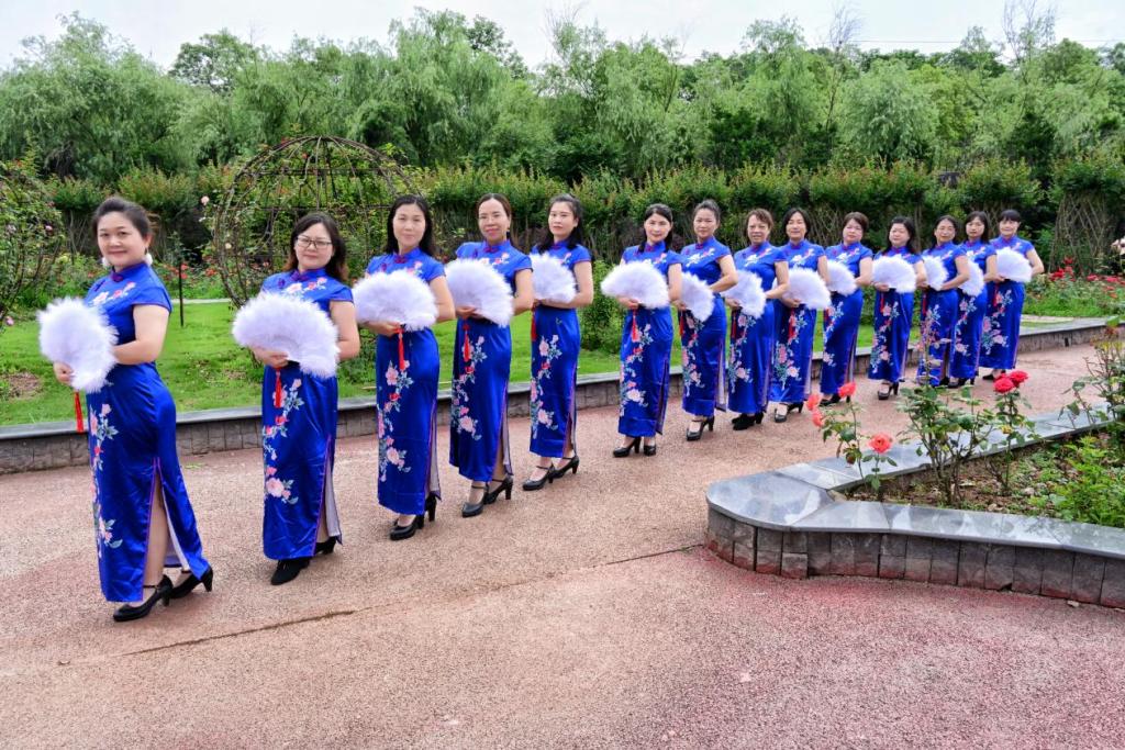 满园深浅色,旗袍展风采。玫瑰园里,上万株玫瑰竞相绽放,争奇斗艳,或红或粉掩映其间,美如织锦,春天的活泼跃然眼前,大家身着美丽的旗袍,纷纷拍照留影。在园内,我们还表演了二支曲目,引得游人纷纷驻足欣赏,现场气氛热烈、欢快,流动的旋律、秀美的步伐与摇曳的花香和谐共融。在枝繁叶茂、花团锦簇中,通过旗袍的演绎,展示出中华旗袍的东方神韵,彰显出新时代女性的清丽典雅气质和积极自信的精神面貌,把这份旗袍的灵秀之美、女性之美流传下来,发扬出新时代的旗袍之美。