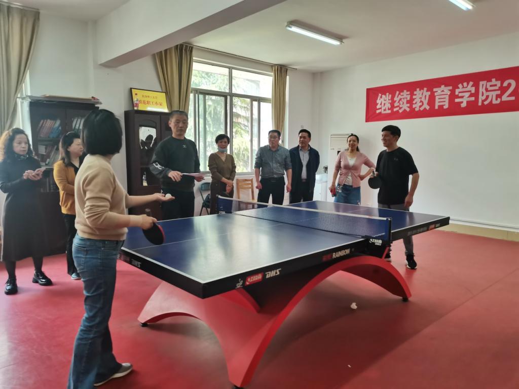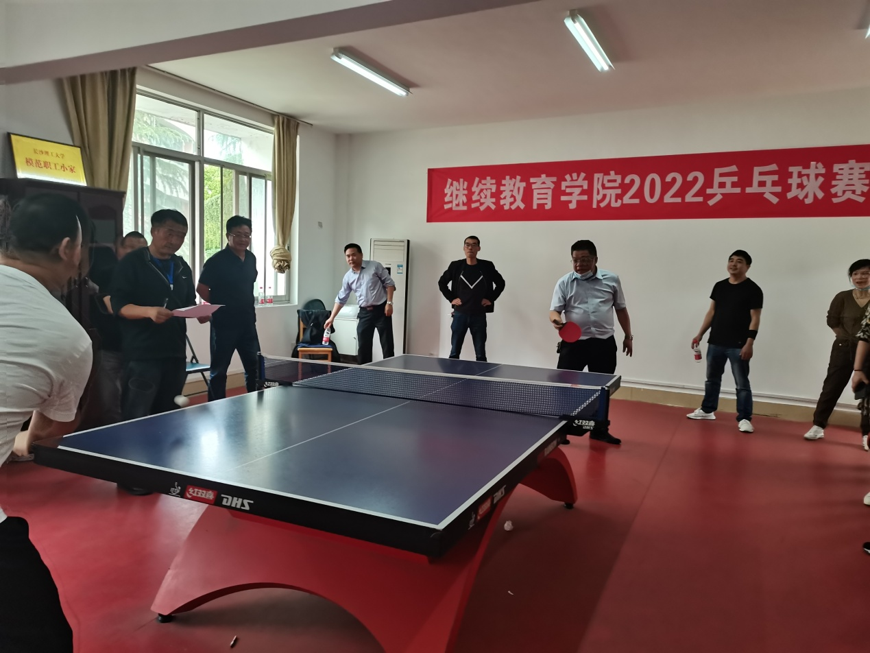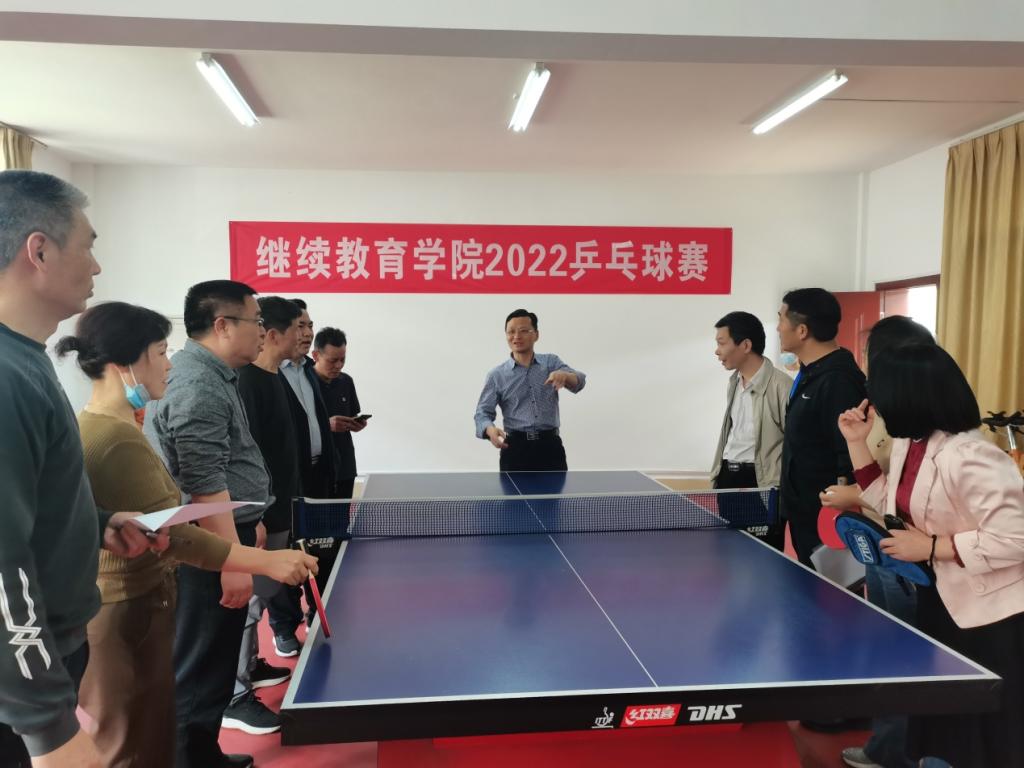 为深入开展“全民健身活动”,推动全院广大教职工体育活动蓬勃开展,增强个人体质,展现广大教职工团结奋进、健康向上的精神,4月20号继续教育学院分工会组织了2022教职工乒乓球比赛,比赛在继教学院15教4楼教工之家举行,学院领导及广大教职工踊跃报名、积极参赛。本次比赛,学院6个工会小组的共64名选手将代表小组和个人参加团体比赛和个人循环淘汰赛。4月19日下午,团体比赛在学院党总支何纯芳书记的开球中拉开帷幕,经过激烈追逐,第二、四、六教工小组先拔头筹,赢得胜利,他们士气高昂,正为下一阶段的比赛摩拳擦掌,力争赛出更好的成绩。