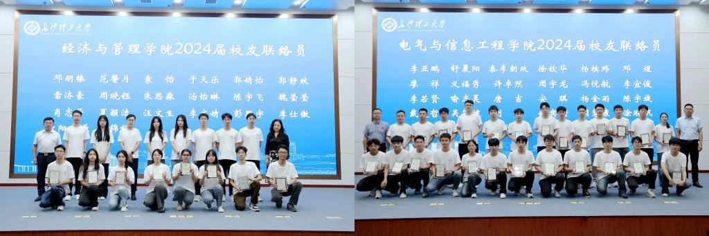 校友总会负责人、相关职能部门负责人及各学院领导、老师为2024届校友联络员颁发了聘书。