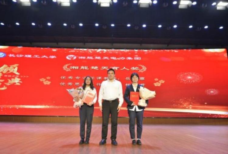 在颁奖环节,2名优秀教师、18个优秀团队及23名优秀学生获湘能楚天奖教奖学金,4名同学获国家奖学金,3名同学获特高压奖学金。获奖教师代表岳雨霏和学生代表梁晨先后发表获奖感言。