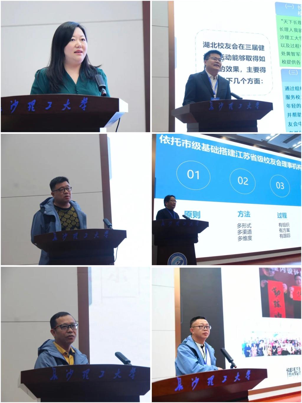 随后,北京校友会以“打造‘产、学、研、用”相融合的校友会”,湖北校友会以“以校友健步行活动载体,增进校友互动交流”、广西校友会以“组织建设带动校友活动”、江苏校友会以“依托市级基础搭建省级校友组织架构”、海南校友会以“以迎新送新活动创建校友文化品牌”、东莞校友会以“校友年会推动校友会建设”为主题分享了校友工作经验。