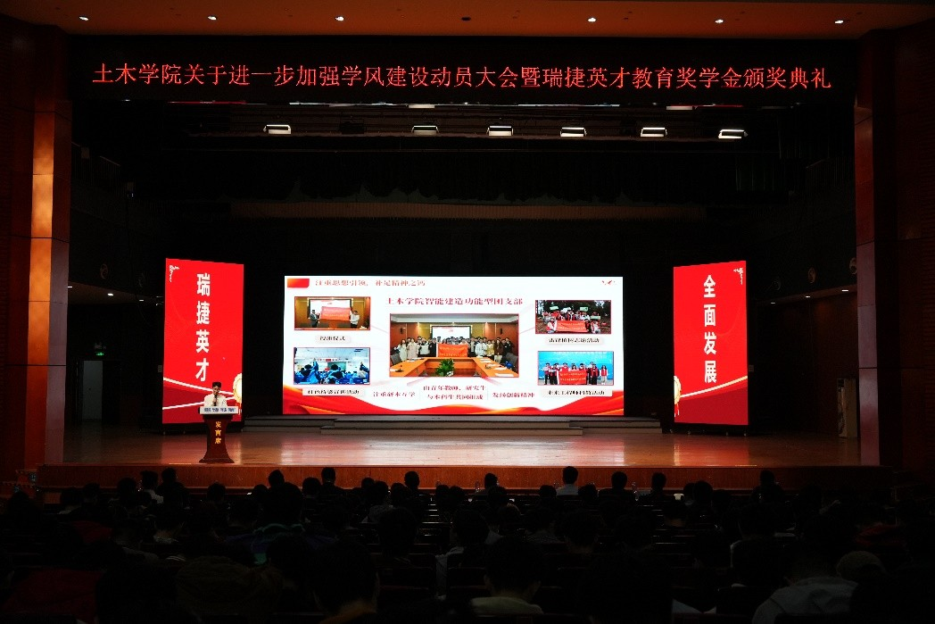 近日,437必赢会员中心土木工程学院瑞捷英才教育奖学金颁奖典礼在云塘校区大会堂举行。深圳瑞捷工程咨询股份有限公司人才发展总监张梦、人才发展主管李昱坤,校土木工程学院领导班子全体成员,全院学生代表1200余人参加活动。活动由土木工程学院党委副书记黄阿明主持。