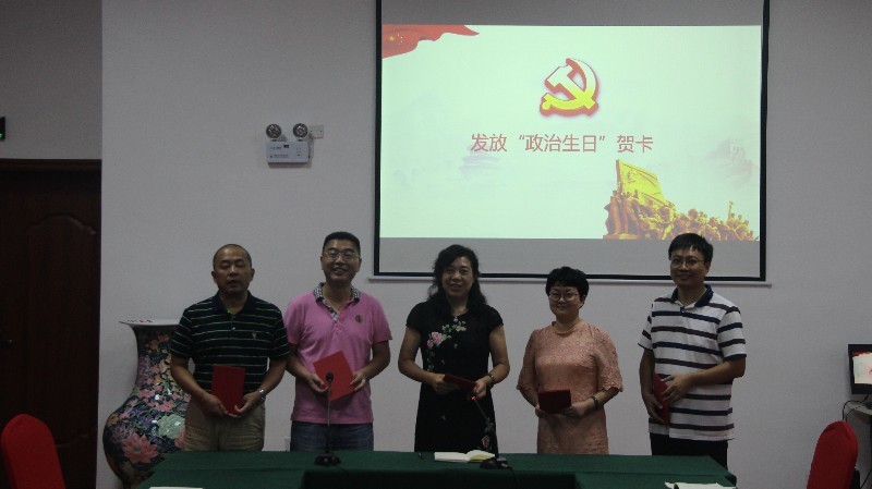 张美红还全体党员赠送“政治生日”贺卡,希望全体党员时刻牢记自己共产党员身份,增强党员意识,注重党性修养,践行入党誓词,不忘初心,继续前进,践行四讲四有,争做合格党员。