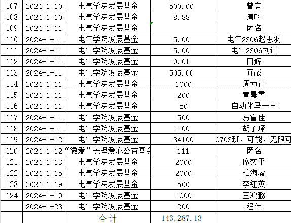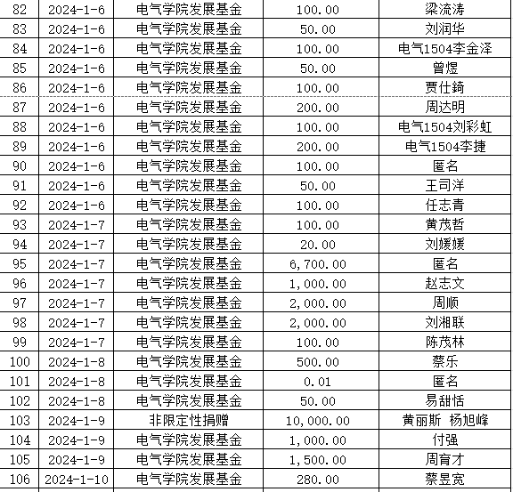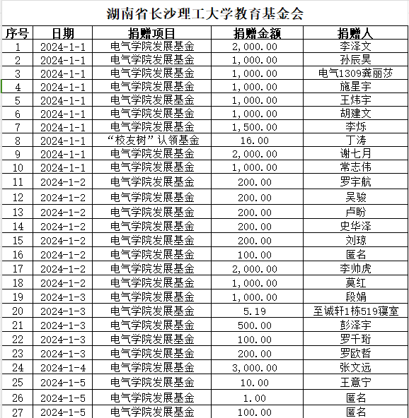 湖南省437必赢会员中心教育基金会2024年1月捐赠收入表