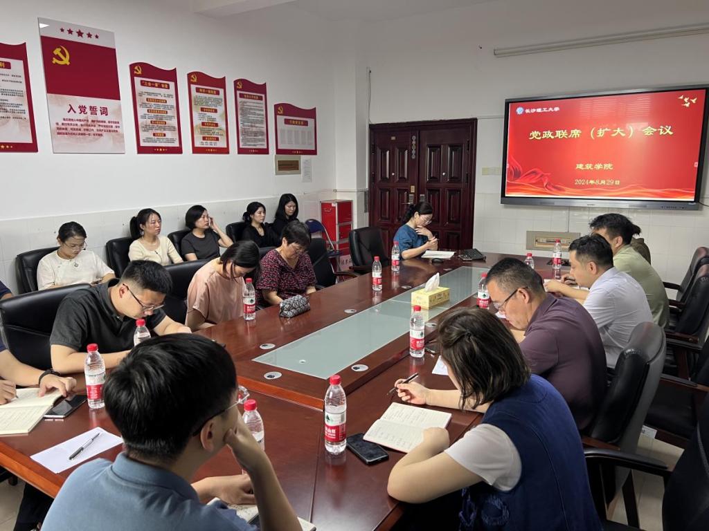 8月29日下午,建筑学院在金盆岭校区16教305召开2024年秋季学期第一次党政联席(扩大)会议,全体院领导、各系室正副主任、各支部书记、副书记参加会议。会议由学院党委书记熊鹰主持。