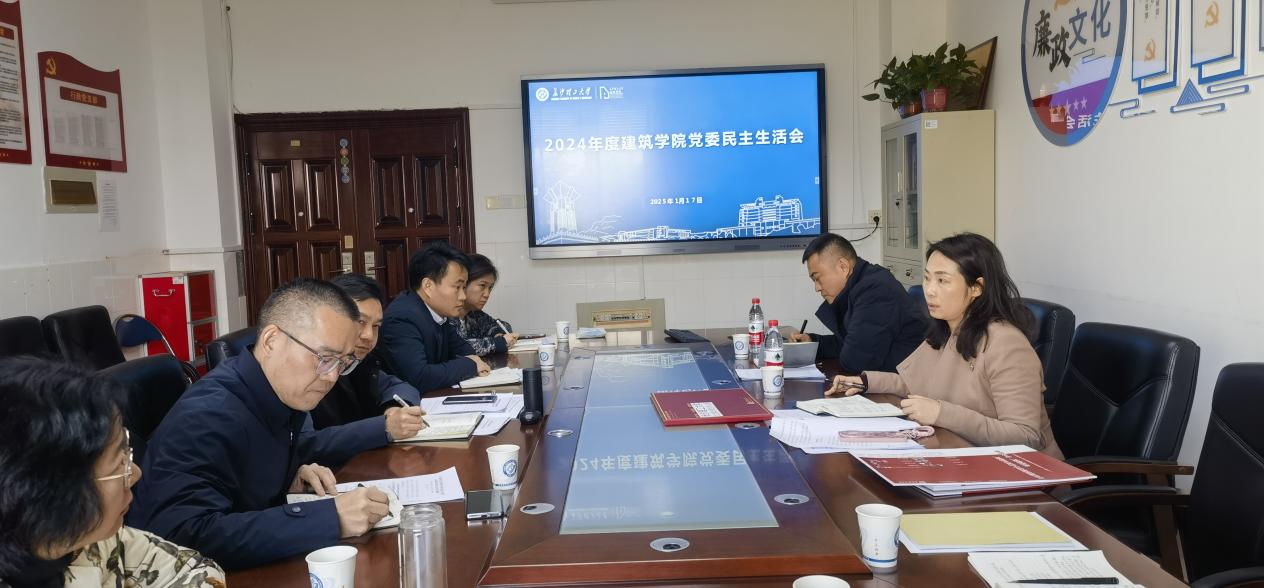 根据学校党委《关于开好2024年度二级党组织民主生活会的通知》要求,2025年1月17日上午,建筑学院党委召开2024年度民主生活会,校党委副书记方琼,校党委组织部副部长乔法光到会指导和督导。会议由学院党委书记熊鹰主持,院党委班子成员参加会议,非党员院领导列席会议。