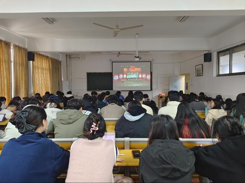活动伊始,全体学生准时通过教育部全国青少年普法网观看了宪法晨读的直播活动。直播在北京设立主会场,内容丰富、庄重严肃,包括升旗仪式、宪法晨读、合唱《宪法伴我们成长》歌曲、宣布第九届全国学生“学宪法讲宪法”活动全国总决赛获奖名单、演讲比赛优秀选手展演以及教育部领导讲话等环节。学生们在观看过程中,认真聆听,仔细学习,对宪法精神有了更深刻的理解和认识。