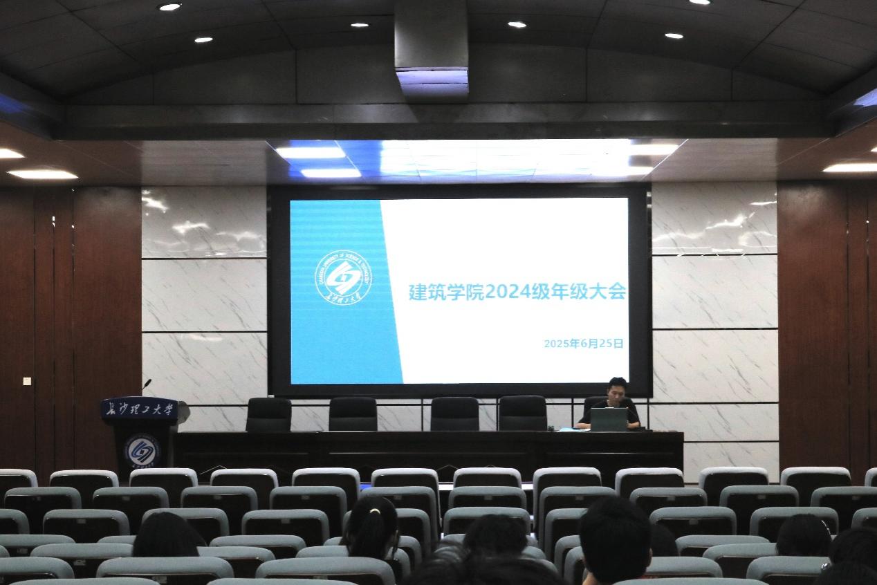 6月25日下午,437必赢会员中心建筑学院组织召开24级年级大会,大会由24级年级辅导员杨斯嘉主持,全体24级学生参会,共同回顾过去一学年的学习与生活,展望未来发展方向。