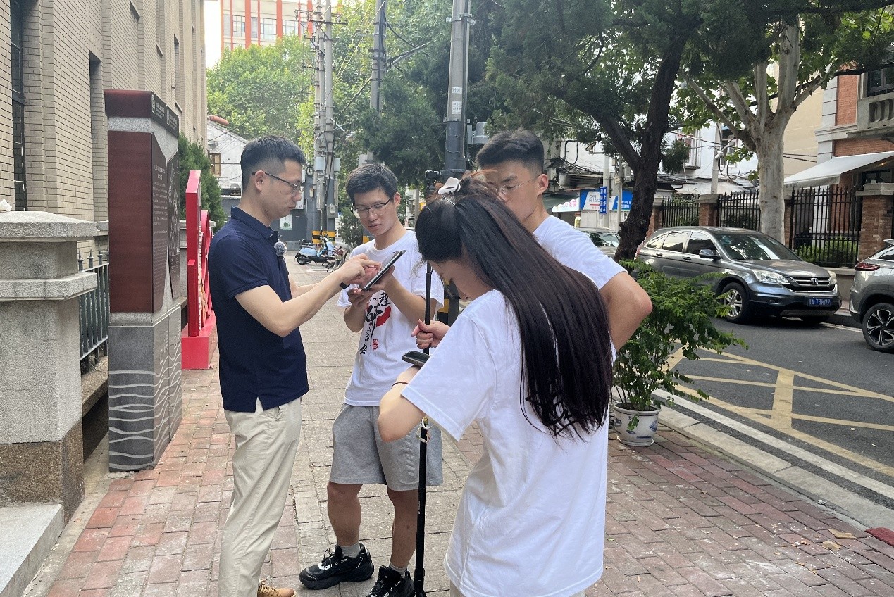 (实践团队对田汉故居中庭的内部空间进行数据采集)