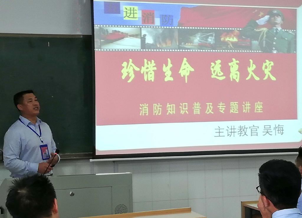 吴悔围绕高校特点,用真实的案例和详实的数据,从火灾的危害、火灾的预防、发现火灾如何处置、火场逃生与自救、器材的使用等方面介绍了相关知识,并对学生宿舍、实验室、办公场所以及交通出行的消防安全提出了建议。
