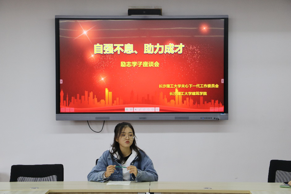 会上,郭恒老师对建筑学院2019级励志学子方修齐同学过去一年的思想、学习、工作和生活情况进行了简单介绍。方修齐同学结合自己一年的学习、工作、生活,以“诚”字为主线,向领导老师和同学们汇报了这一年的情况,同时感谢学校关工委和学院对自己这一年来的关心与关爱,自己将 “不忘初心、继续前进”,不辜负学校和学院的期望。毛光华书记希望同学们要学会规划大学时代、规划人生,自强不息、艰苦奋斗。王乃厚主任给大家分享了自身艰苦的求学经历,并告诫同学们人生并非一帆风顺,要学会勇敢面对困难,学校将为大家的健康成长、顺利成才,保驾护航。最后,建筑学院党委副书记谢士成对方修齐同学的表现进行了充分肯定,并告诉同学们要学会感恩,感恩伟大的时代、感恩伟大的党、感恩伟大的国家。