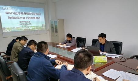 学习会上,建筑学院党委理论学习中心组成员围绕习近平总书记在党史学习教育动员大会上的重要讲话精神、中共中央印发《关于在全党开展党史学习教育的通知》文件精神,学校党委书记付宏渊在必赢官网党史学习教育启动仪式上的讲话开展交流学习。