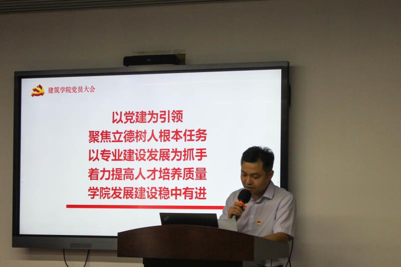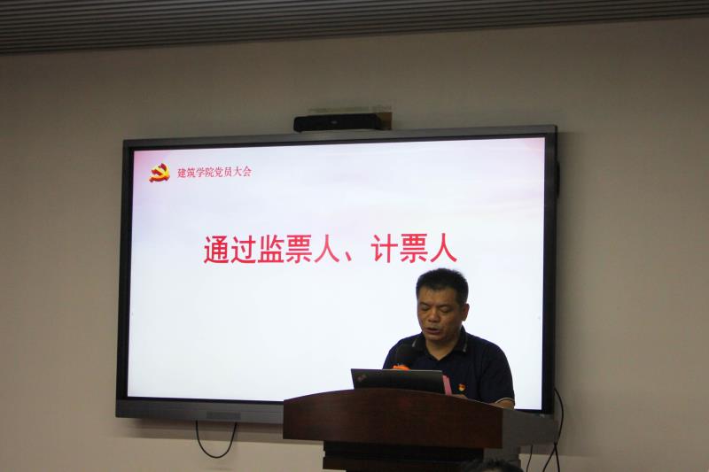 根据《中国共产党章程》和《中国共产党基层组织选举工作条例》等规定以及学校党委《关于做好基层党组织换届选举工作的通知》(长理工大党[2021]77号)有关精神和要求,建筑学院党委于2021年7月13日召开党员大会进行换届选举,会议由学院党委副书记谢士成主持。