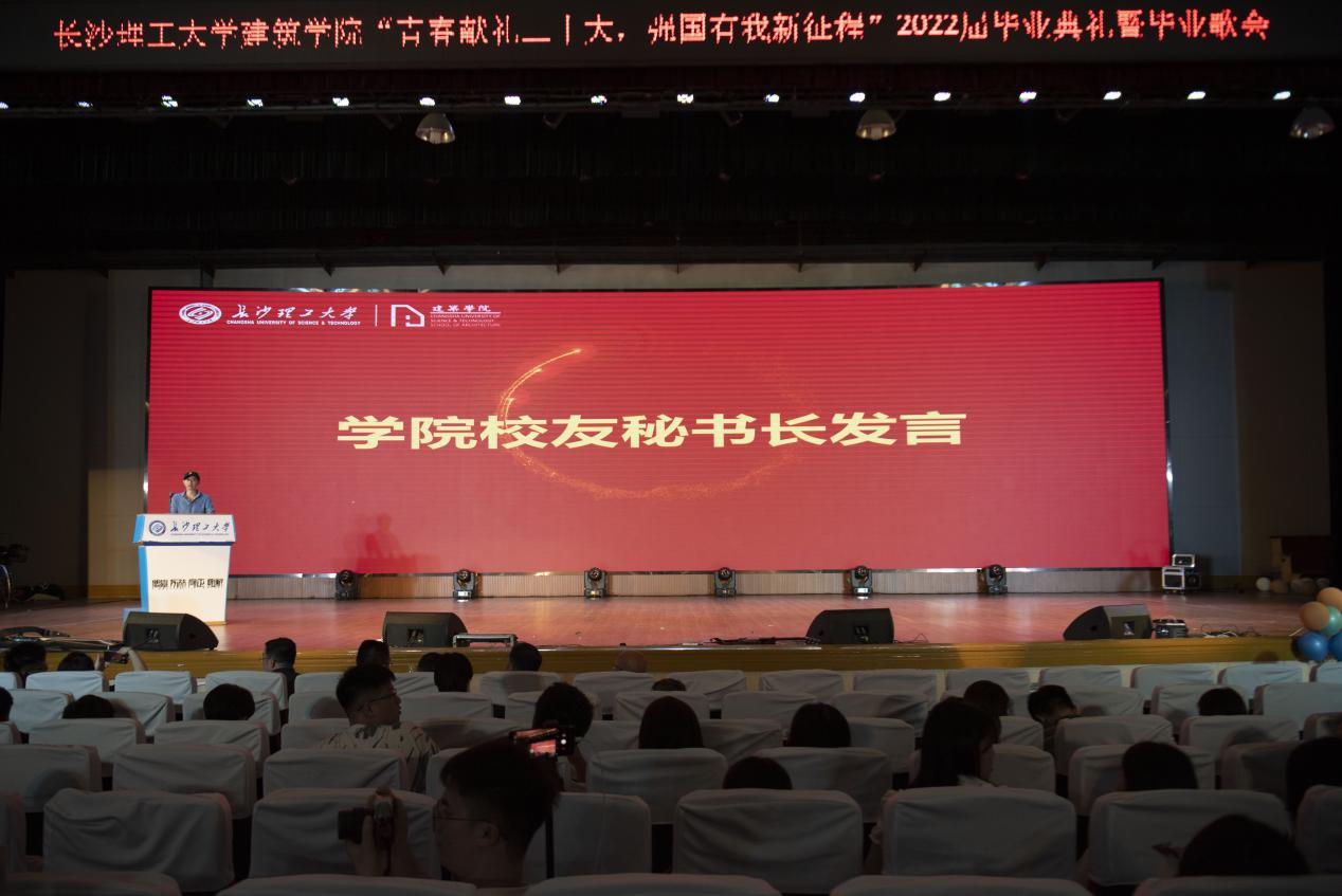 6月16日晚,建筑学院2022届毕业典礼在五教报告厅举行。建筑学院院长杨瑛、党委书记熊鹰、党委副书记李家春、副院长许建和、何川,学院部分教师代表和2022届全体毕业生参加了毕业典礼。典礼由2017级辅导员王宇霖主持。
