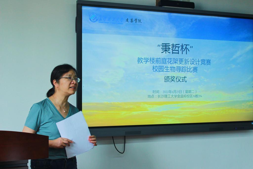 为表彰建院学子在竞赛中取得优秀成果,6月21号下午,“秉哲杯”教学楼前庭花架更新设计竞赛及校园生物寻踪比赛颁奖典礼于16教314召开,此次仪式由王茜老师主持。建筑学院副院长周晨、党委副书记李家春、团委书记王宇霖、风景园林系主任熊辉、长沙秉哲科技有限公司总经理葛可出席。此次颁奖典礼面向建筑学院获奖学生。