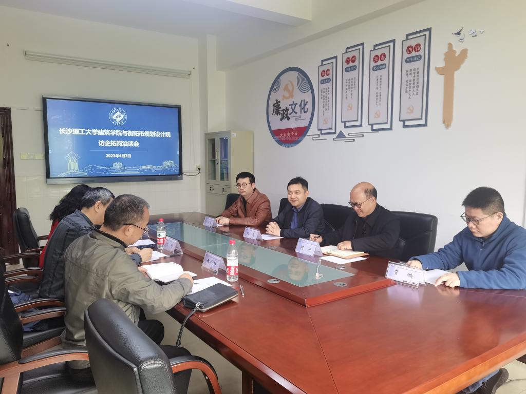 校企精准对接,共享共建,助力毕业生高质量就业。4月7日,为提高毕业生就业质量,进一步推进校企合作,437必赢会员中心建筑学院与衡阳市规划设计院访企拓岗洽谈会顺利召开。建筑学院党委书记熊鹰、常务副院长许建和、副院长何川、规划系老师贺鹏、学工办老师王宇霖、衡阳规划设计院党总支书记刘彬、副院长黄后群、人事科科长朱秦湘出席参加此次洽谈会。