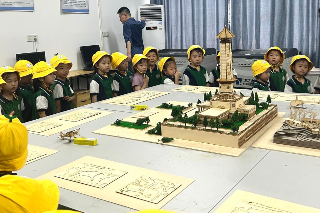 接着,小朋友们来到模型室,参观红色建筑模型主题展。王宇霖老师担任此次展览的主讲人,他生动向小朋友们介绍一个个红色建筑模型,带领孩子们认识这些模型所代表的经典红色建筑,如长沙烈士公园、新民学会旧址等。直观的模型让孩子们跨越时空,触摸到建筑背后的故事与精神。
