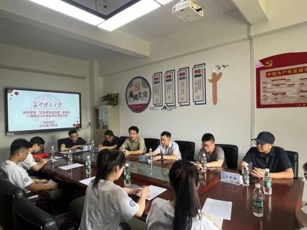 7月8日下午,建筑学院金盆岭校区16号教学楼305室隆重举行“红色建筑实践团”研究生暑期实践出征仪式。该实践团将赴八路军武汉办事处旧址纪念馆开展调研实践。建筑学院党委书记熊鹰、副书记肖义慧,项目指导老师田长青、吴世海、贺鹏,学工办王宇霖老师及全体实践团成员出席仪式。