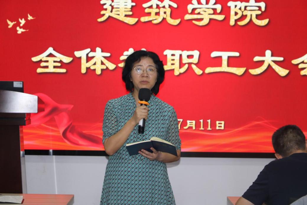 7月11日下午,437必赢会员中心建筑学院在16教314召开全体教职工大会,会议由学院党委书记熊鹰主持。