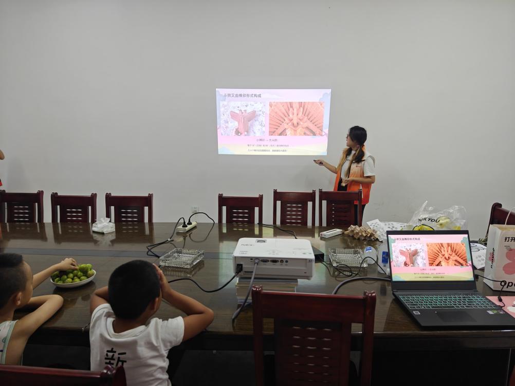 在古建筑宣讲及鲁班锁体验活动中,志愿者们通过生动的图片与精彩的故事,向孩子们介绍了中国古建筑的独特魅力与深厚历史底蕴,从飞檐斗拱到榫卯结构,孩子们听得津津有味。为了让孩子们更直观地感受古建筑的智慧,志愿者们精心准备了鲁班锁体验环节。孩子们围坐在一起,分组合作,尝试拆解和组装鲁班锁,现场气氛热烈,充满了欢声笑语。在动手实践过程中,孩子们不仅锻炼了空间思维能力,更对传统建筑文化有了更深刻的理解与热爱。