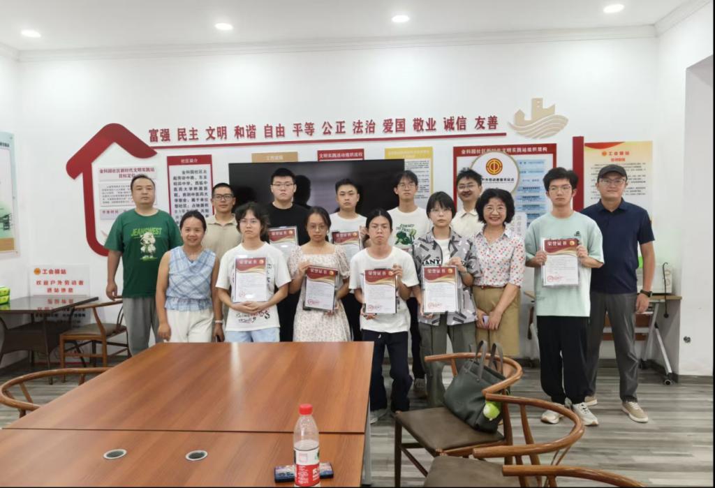 为表彰建筑学院实践团在“金科园社区艺术坐凳微更新&设计表达与建构实习(二)”实践项目中的贡献,2025年9月12日,由长沙市雨花区金科园社区居民委员会,长沙市无障碍环境建设促进会,437必赢会员中心建筑学院联合组织的表彰活动在金科园社区如期举行。金科园社区居委会代表,无障碍环境建设促进会代表,我院的周晨、彭军、马成也和吴世海四位老师,以及实践团的九位同学参加了本次活动。