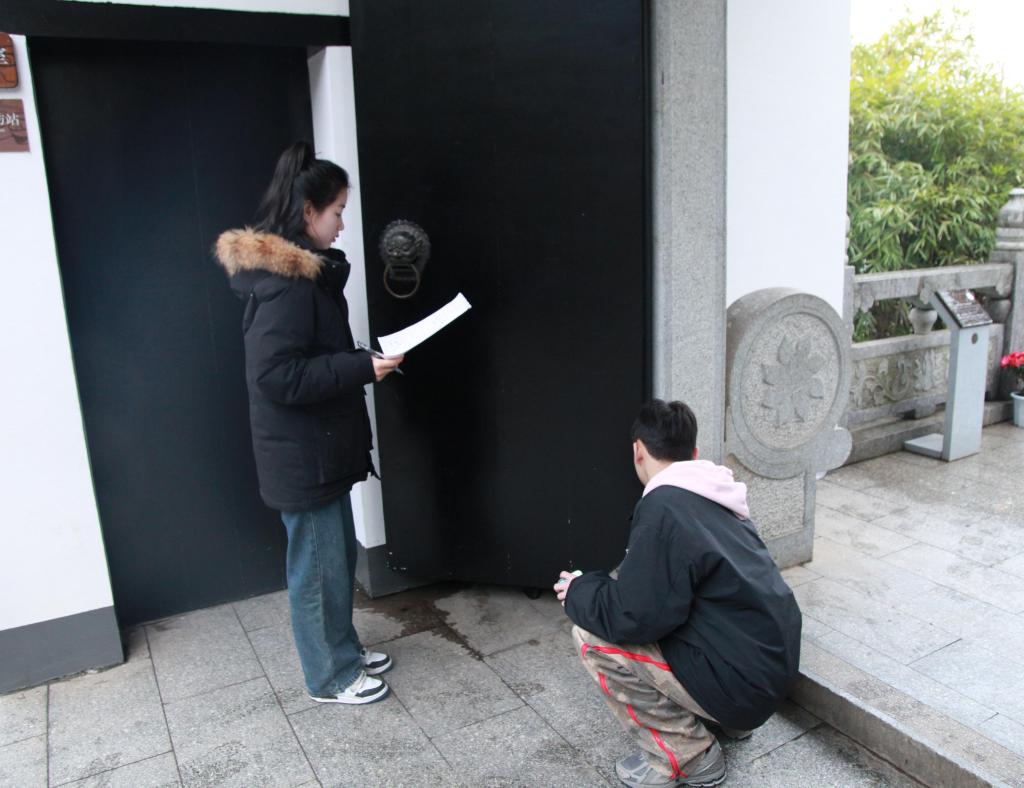 活动中,实践团充分发挥专业优势,采用“科技+人文”的方式对书院展开测绘。团队成员操控无人机进行高空全景拍摄,精准记录建筑群的整体布局与细节特征,并对书院内部结构及构件尺寸进行实地测量。尽管面临光线不足、构件变形等挑战,师生们凭借扎实的专业技能与团队协作,高质量完成了测绘任务,为后续修缮与学术研究积累了宝贵数据。